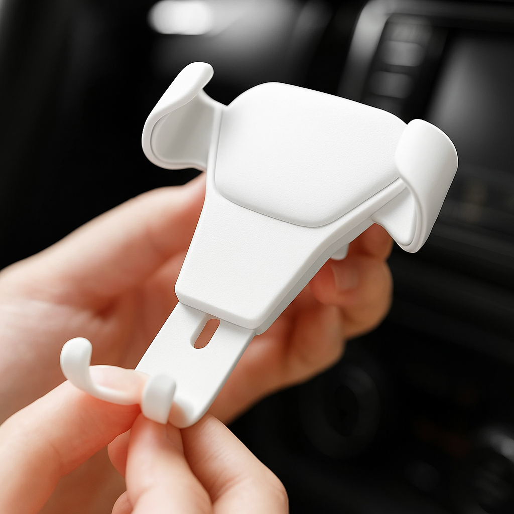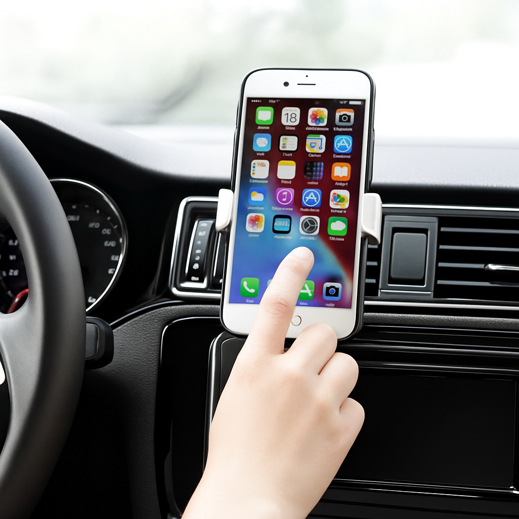 Funktioniert mit den meisten Geräten von 4,7–6,7 Zoll (z. B. iPhone, Samsung Galaxy, Huawei). Das schlanke, minimalistische Design passt perfekt zu jedem Fahrzeuginnenraum – dezent und funktional.